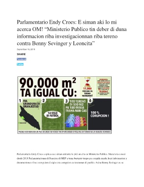 documentonan riba e corupcion di siglo esta corupcion cu terenonan di pueblo. Asina Benny Sevinger cu su