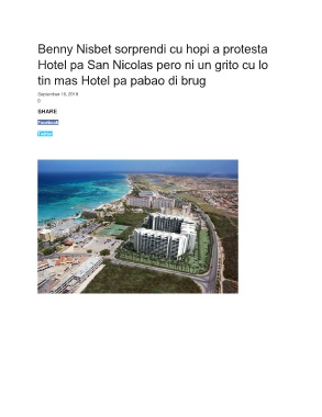 Benny Nisbet sorprendi cu hopi a protesta Hotel pa San Nicolas pero ni un grito cu lo tin mas Hotel pa pabao di brug September 18, 2019 0 SHARE Facebook Twitter