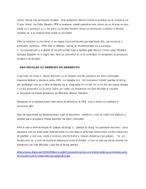 Aruba nos ta y nos ta sostene desaroyo rond di Aruba y nos ta pidi pa duna sosten na