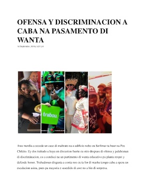 di discriminacion, cu a conduci na un partimento di wanta educativo pa planta respet y