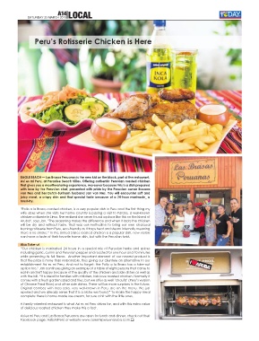 “Pollo a la Brasa, roasted chicken, is a very popular dish in Peru and the first thing my