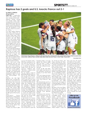 Rapinoe has 2 goals and U.S. knocks France out 2-1