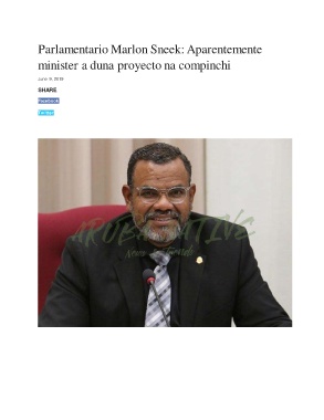 Parlamentario Marlon Sneek: Aparentemente minister a duna proyecto na compinchi June 9, 2019 SHARE Facebook Twitter