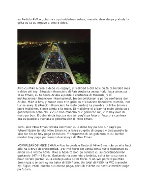 e debe aki tey. Situacion financiero di Pais Aruba ta asina malo, laga atras pa