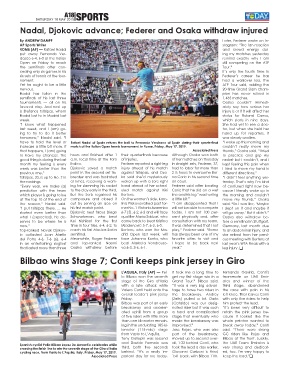 Top-ranked Novak Djokov- reach his first Masters Series Bertens, who won the Ma- play,” Federer said. “Rome to an abdominal injury, and