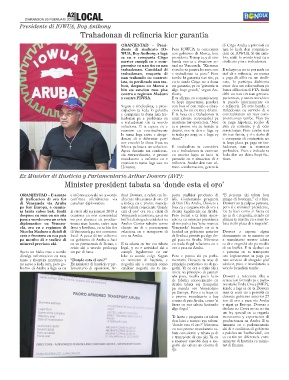cera e frontera cu nos pais local. A pesar di tur esfuerso oro na Aruba. di Aruba a permiti pa algo ile- documento cu ta mustra cu