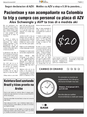 Segun declaracion di AZV: Motibo cu AZV a stop e $ 20 ta pasobra....