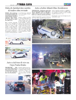 via di falta di claridad riba y cu ta bin trafico di direc- perde control y, di un of otro manera, a pega den banda for di e auto.