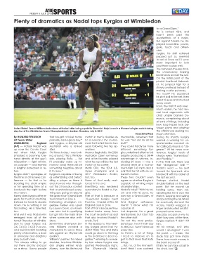 local pub the night before that overshadowed every- secondary to Nadal vs. Kyr- Nadal’s take? “With his tal- holding serve, then cel-