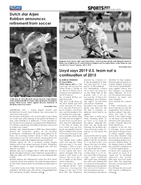 retirement from soccer. in Canada four years ago. against. Lloyd, who turns 37 next
