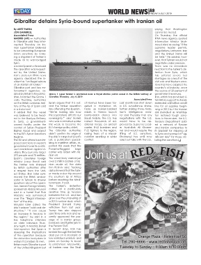 sisted by Britain’s Royal Ma- Grace 1 super tanker is anchored near a Royal Marine patrol vessel in the British territory of government revenues.