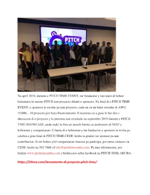 Na april 2019, durante e PITCH TIME EVENT, tur fundacion y nan team di hoben