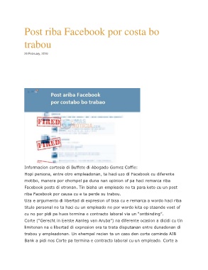 riba Facebook por causa cu e ta perde su trabou.