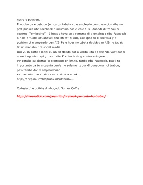 soborno (“omkoping”). E hues a haya cu e remarca di e empleada riba Facebook