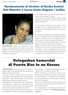 Maarten a anunsiá djamars ku entrante 1 mart señora nan ta kere ku otro siman e ta raportá na Banko Sentral.