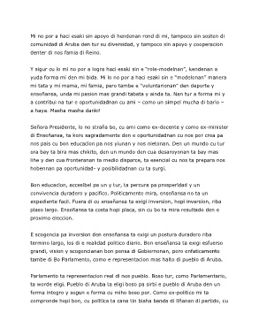 Parlamento ta representacion real di nos pueblo. Boso tur, como Parlamentario,