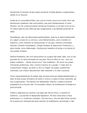 pami tambe, como Gobernador. Decisionnan beneficio di Aruba y na interes di