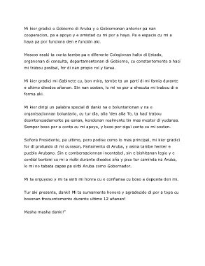 Mi kier gradici e Gobierno di Aruba y e Gobiernonan anterior pa nan