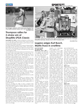 pitching wedge, which is my 135 club,” she said. “It end- a dwindling lead over Truex toward the end of the sec- ton, where Simon Pagen-