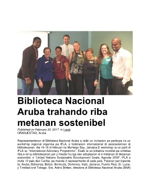 Representantenan di Biblioteca Nacional Aruba a ricibi un invitacion pa participa na un