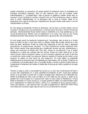 studiante cu a caba nan masters den bio marine. Aruba ta e pais ideal pa tin un bio
