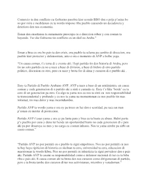 Esey ta Partido di Pueblo Arubano AVP. AVP a nace a base di un sentimiento, un causa