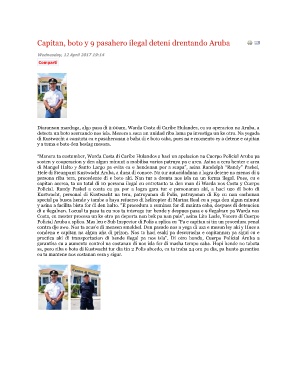 practica aki di transportacion di hende ilegal pa nos isla". Di otro banda, Cuerpo Policial Aruba a