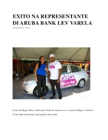 EXITO NA REPRESENTANTE DI ARUBA BANK LEV VARELA 30 August, 2018, 7:01 pm 33 E aña aki Magic FM ta celebra nan 20 aña di existencia cu e evento di Magic’s Hand-A- Thon, unda un persona lo por gana un auto nobo.