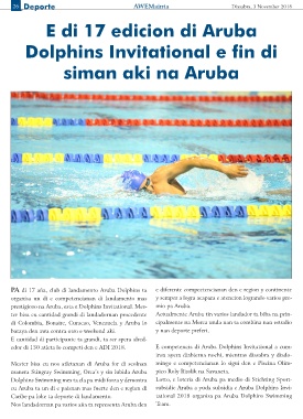 Caribe pa loke ta deporte di landamento. tational 2018 organisa pa Aruba Dolphins Swimming
