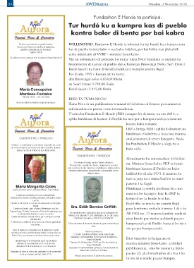 Danki na Aurora Funeral Home pa e servicio cu hopi Wimco, 60 plussers’ CDP, bisiñanan, Dr. D. de Cuba,