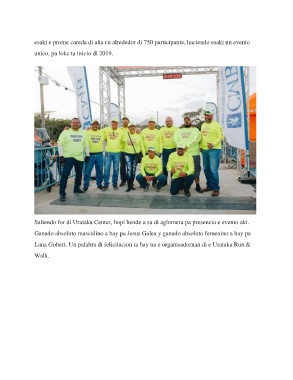 Lana Gobert. Un palabra di felicitacion ta bay na e organisadornan di e Urataka Run &