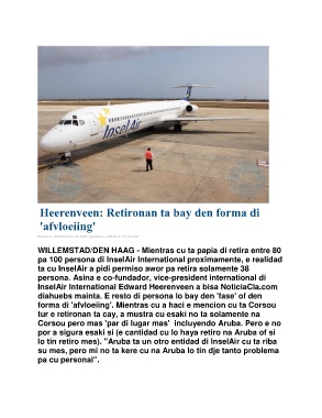 lo tin retiro mes). "Aruba ta un otro entidad di InselAir cu ta riba