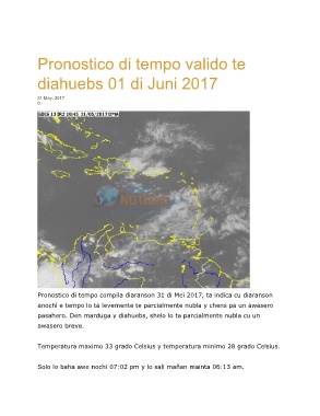 Pronostico di tempo compila diaranson 31 di Mei 2017, ta indica cu diaranson