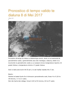 Pronostico di tempo ta indica cu diadomingo anochi, shelo lo ta levemente te