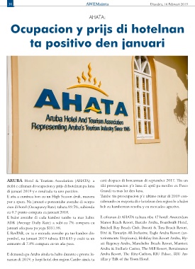 cion di hotel (Occupancy Rate) tabata 89.5%, subiendo bek cu kambernan renoba y cu mercadeo agresivo.