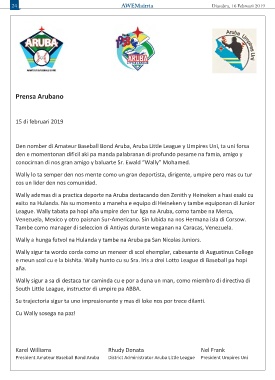 President Amateur Baseball Bond Aruba District Administrator Aruba Little League President Umpires Uni