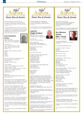 Lo tin oportunidad pa condoleer diahuebs 14 februari Royal Funeral Home di 7’or pa 9’or di anochi.