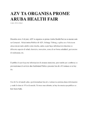 Diasabra awor, 8 di juni, AZV ta organisa su prome Aruba Health Fair na su mesun sede