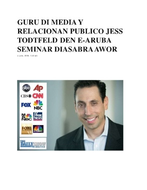 GURU DI MEDIA Y RELACIONAN PUBLICO JESS TODTFELD DEN E-ARUBA SEMINAR DIASABRA AWOR 3 June, 2019, 7:30 am