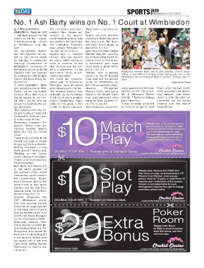 at Wimbledon, and she The unseeded Australian iard beat Yuichi Sugita of