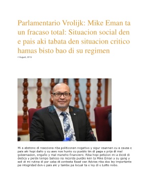 Parlamentario Vrolijk: Mike Eman ta