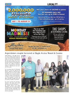 Argentinian couple honored at Eagle Aruba Resort & Casino