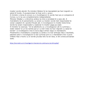 E minister a duna di conoce cu e investigacion lo wordo haci pa un compania di