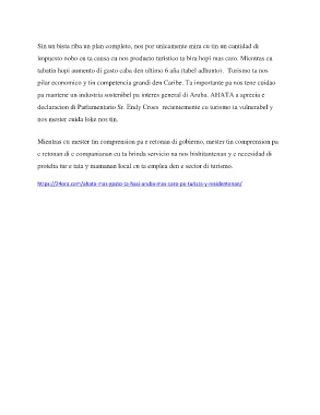 impuesto nobo cu ta causa cu nos producto turistico ta bira hopi mas caro. Mientras cu