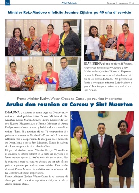 Prome Minister Evelyn Wever-Croes na Corsou pa reunion importante:
