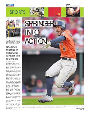 go to work on making Houston Astros' George Springer celebrates after hitting a solo home run in the eighth inning during Game 3 of a baseball American