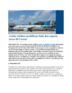 asina pa falta di pago. Ta trata di pago di e servicio ora cu e aerolinea ta uza e