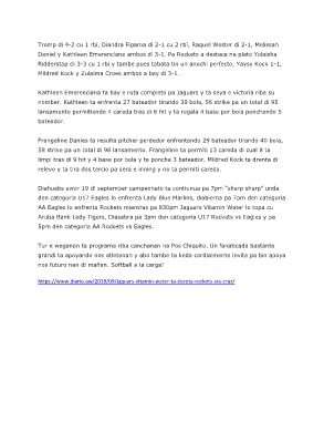 Tromp di 4-2 cu 1 rbi, Diandra Figaroa di 2-1 cu 2 rbi, Raquel Wester di 2-1, Melissah