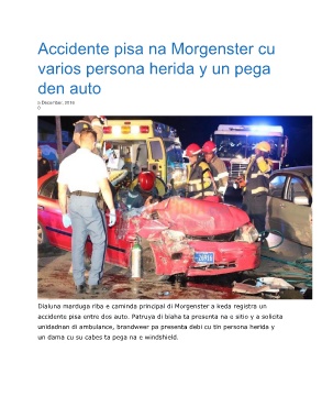 accidente pisa entre dos auto. Patruya di biaha ta presenta na e sitio y a solicita