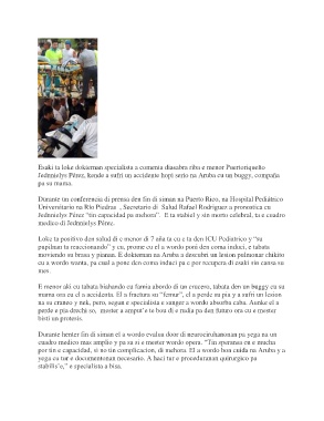 Jednnielys Pérez “tin capacidad pa mehora”. E ta stabiel y sin morto celebral, ta e cuadro